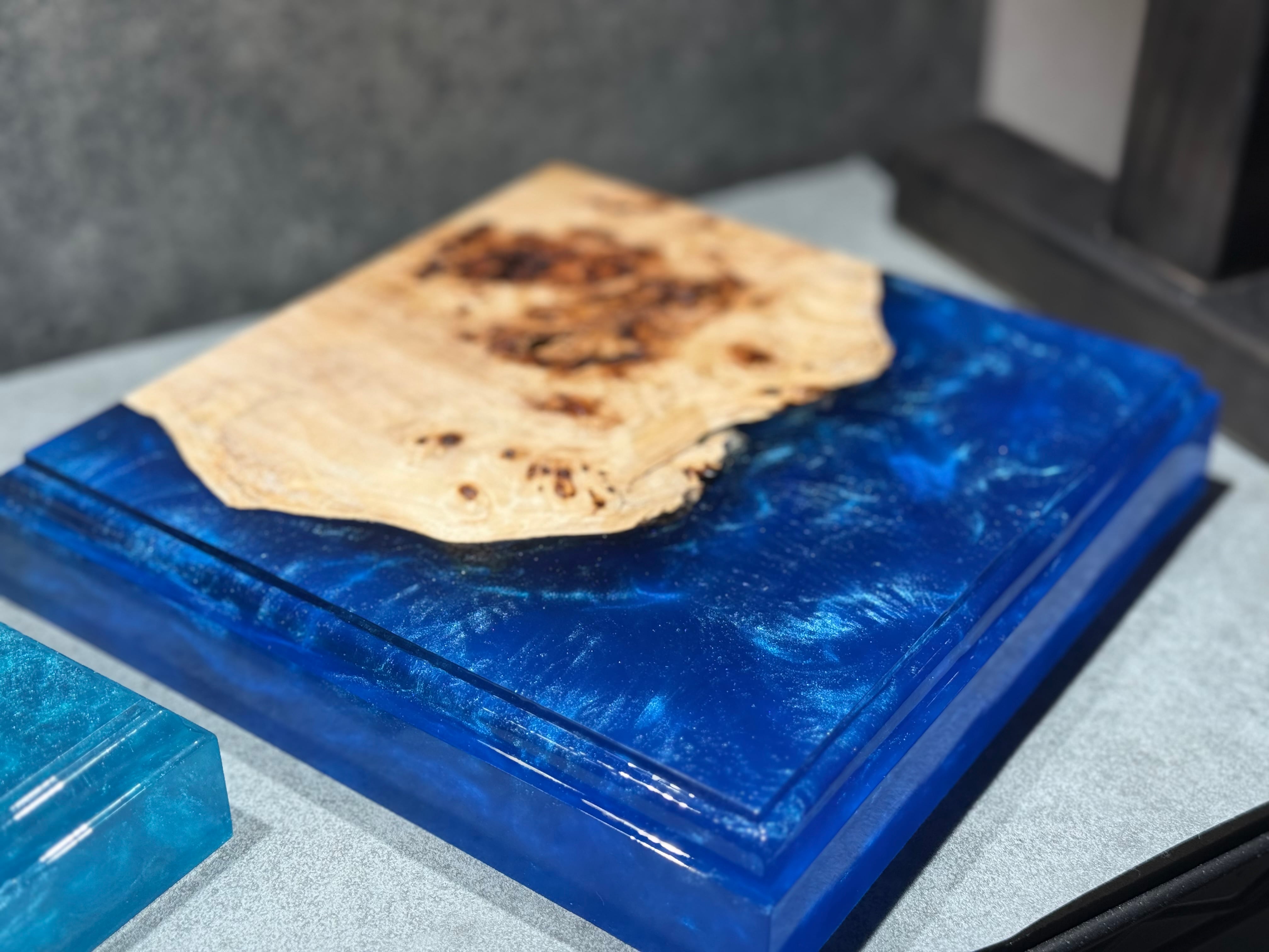 ポプラの木目とレジンがマッチした完全1点物です!モールディング加工でよりカッコよく仕上げました!